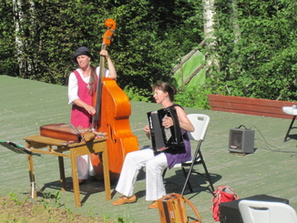 ![]() Perriin tyssit eli Eila Hartikainen ja Sirkka Kosonen esittivät kerimäkeläisiä kansanlauluja ja runolaulua |