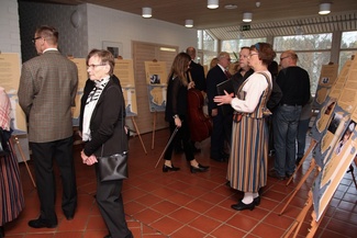 ![]() Kainuun museon julistenäyttely Veikko Huovisesta Sampolan aulassa. |
