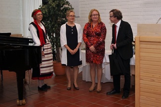 ![]() Huovisseuran entiset puheenjohtajat Eila Valtanen ja Kerttu Härkönen, nykyinen puheenjohtaja Pekka Oikarinen sekä sihteeri Leena Marja Tikkanen. |