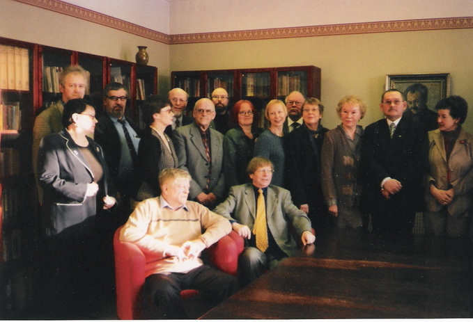 ![]() Ensimmäinen pohjoismainen seminaari Espoon Hanasaaressa elokuussa 2007. Kuvassa keskellä Nimikoitten puheenjohtaja Matti Nummenpää |